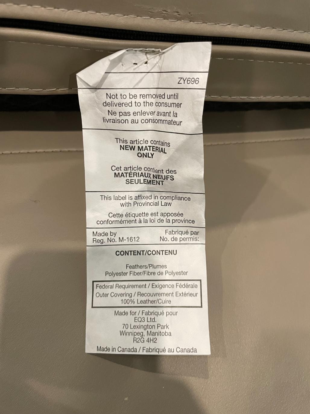 EQ3 Authentic Leather SofaSeemingly minor wear upon brief inspection84x36x31Client states original pre-tax retail price: $3,000.00 (unverified)Refunds will not be issued if colour does not meet with customer expectation*Buyer note: This particular client’s home does not have a driveway or garage, and street parking is relatively restrictive. Upon arrival, item(s) will be placed one-by-one directly in front of townhome for pickup. It is vital for this particular event that you ensure to come prepared with the person-power required to move your purchase(s) a likely distance without staff assistance. Buyer enters property at their own risk. Buyer responsible for arriving with tools & packing materials. Buyer agrees to arrive well before 6pm, to allow for customer queue & loading time.