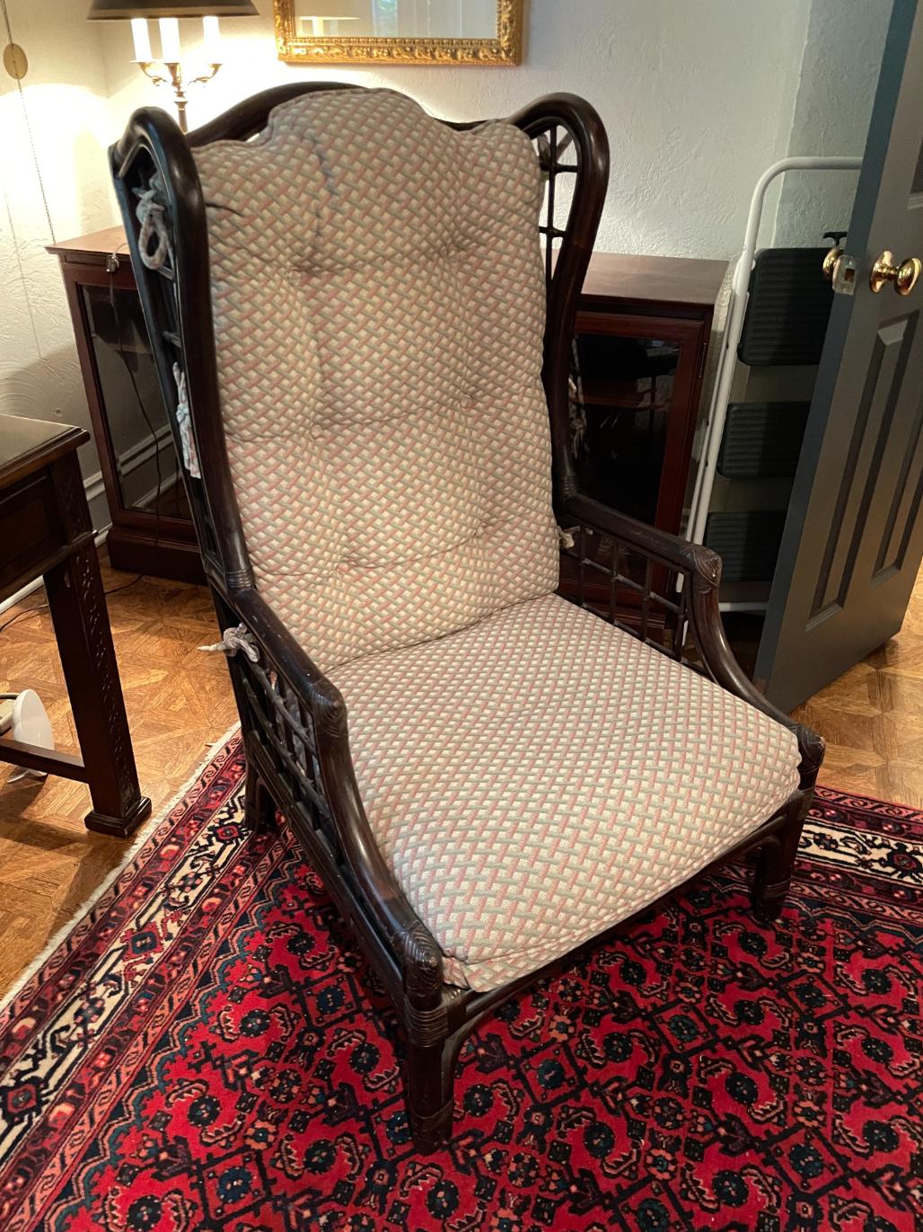Rattan ArmchairModerate wear27x32x46*Buyer note: This particular client’s home does not have a driveway or garage, and street parking is relatively restrictive. Upon arrival, item(s) will be placed one-by-one directly in front of townhome for pickup. It is vital for this particular event that you ensure to come prepared with the person-power required to move your purchase(s) a likely distance without staff assistance. Buyer enters property at their own risk. Buyer responsible for arriving with tools & packing materials. Buyer agrees to arrive well before 6pm, to allow for customer queue & loading time.