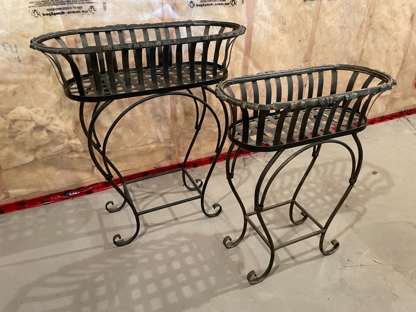 Pair Metal Basket PlantersCondition as shownLargest 28x12x33